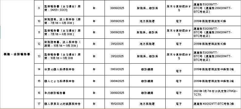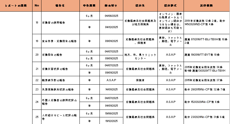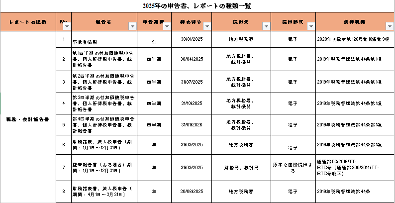 2025年の申告書、レポートの種類一覧